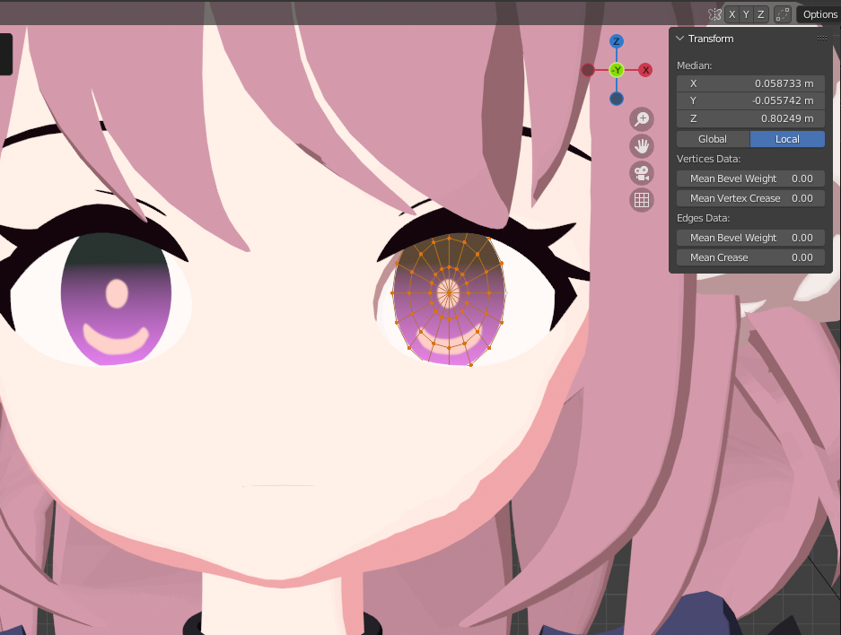 - テクスチャを適応したい目などを選択しエディットモードに入る。